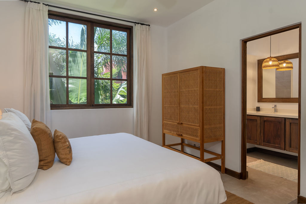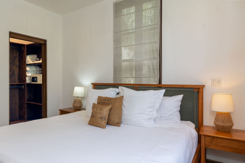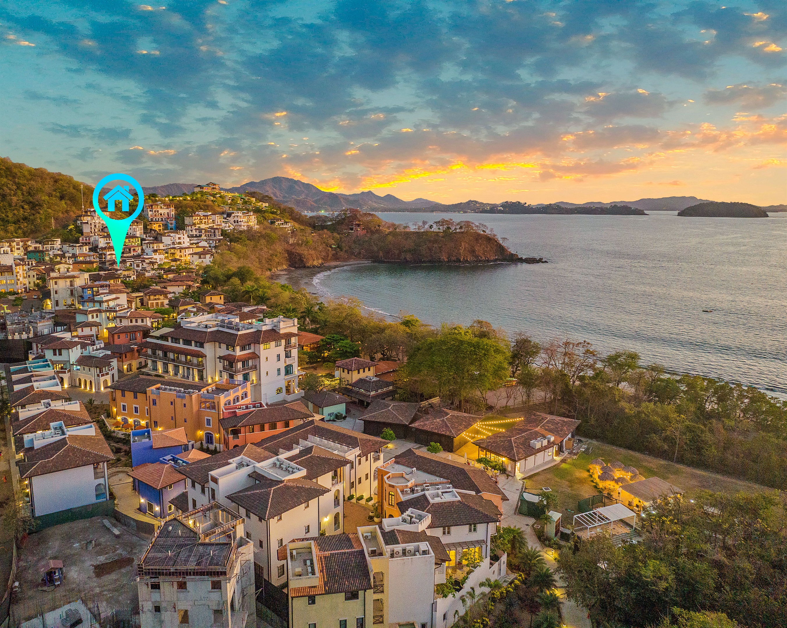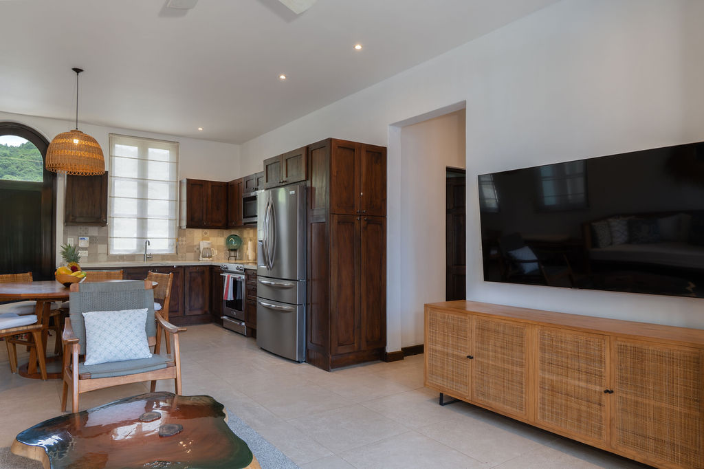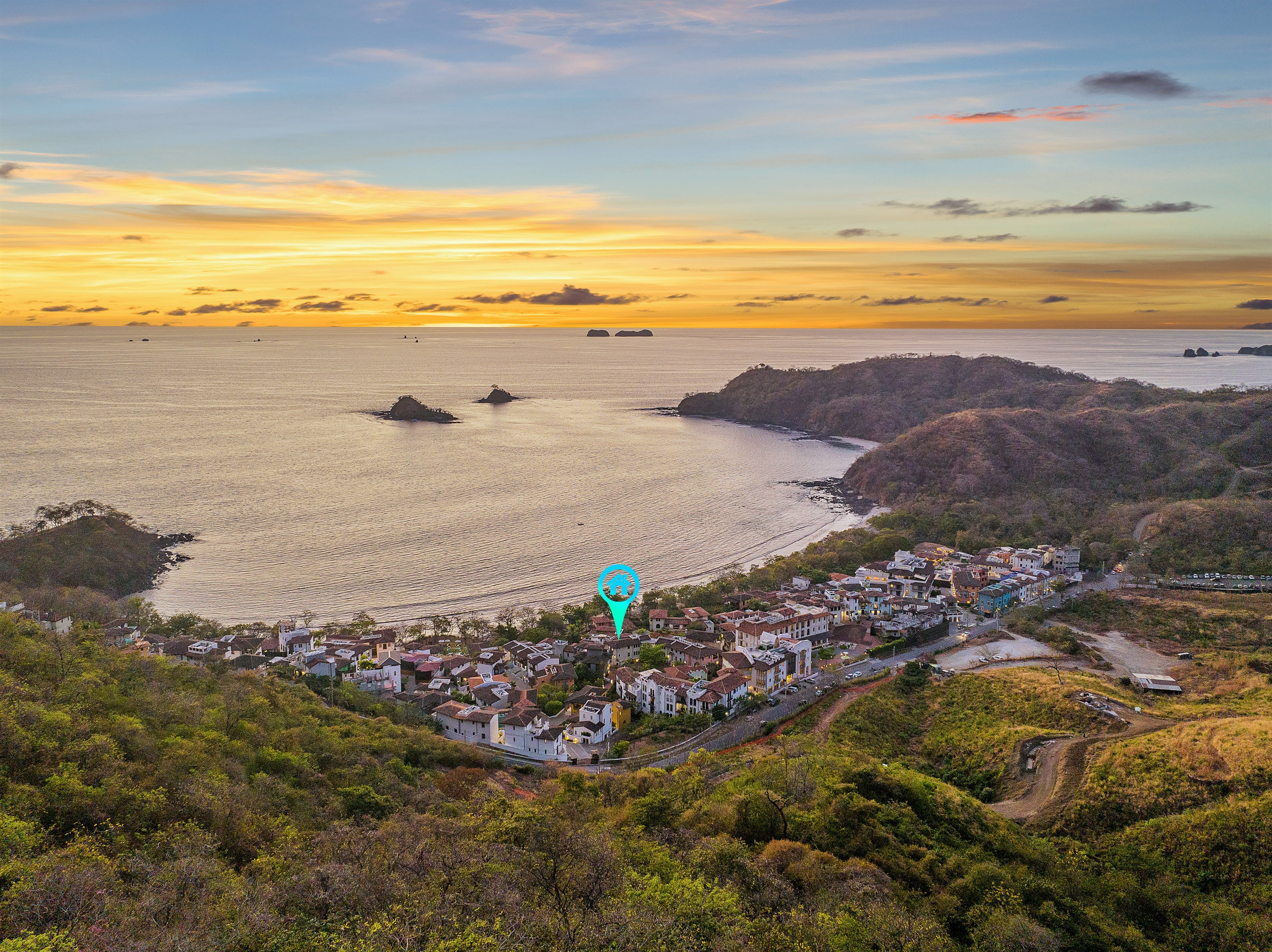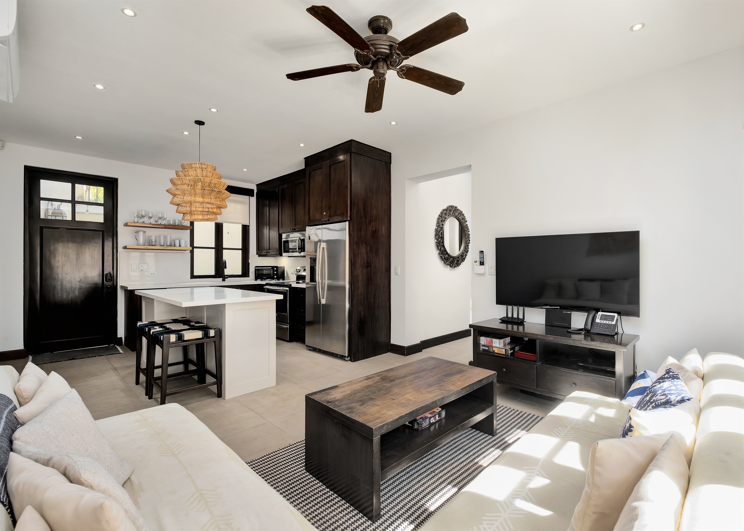 Fully remodeled flat with king suite + bunk‑style 2nd bedroom, full kitchen, Smart TV, Wi‑Fi, washer/dryer, linens & private patio w/ grill. Between two car‑free plazas w/ rooftop ocean views & outdoor shower. Steps to Playa Danta, restaurants & biking trails; close to sailing, zip‑lining & horseback riding. Pet‑friendly. 45 min from Liberia Airport.