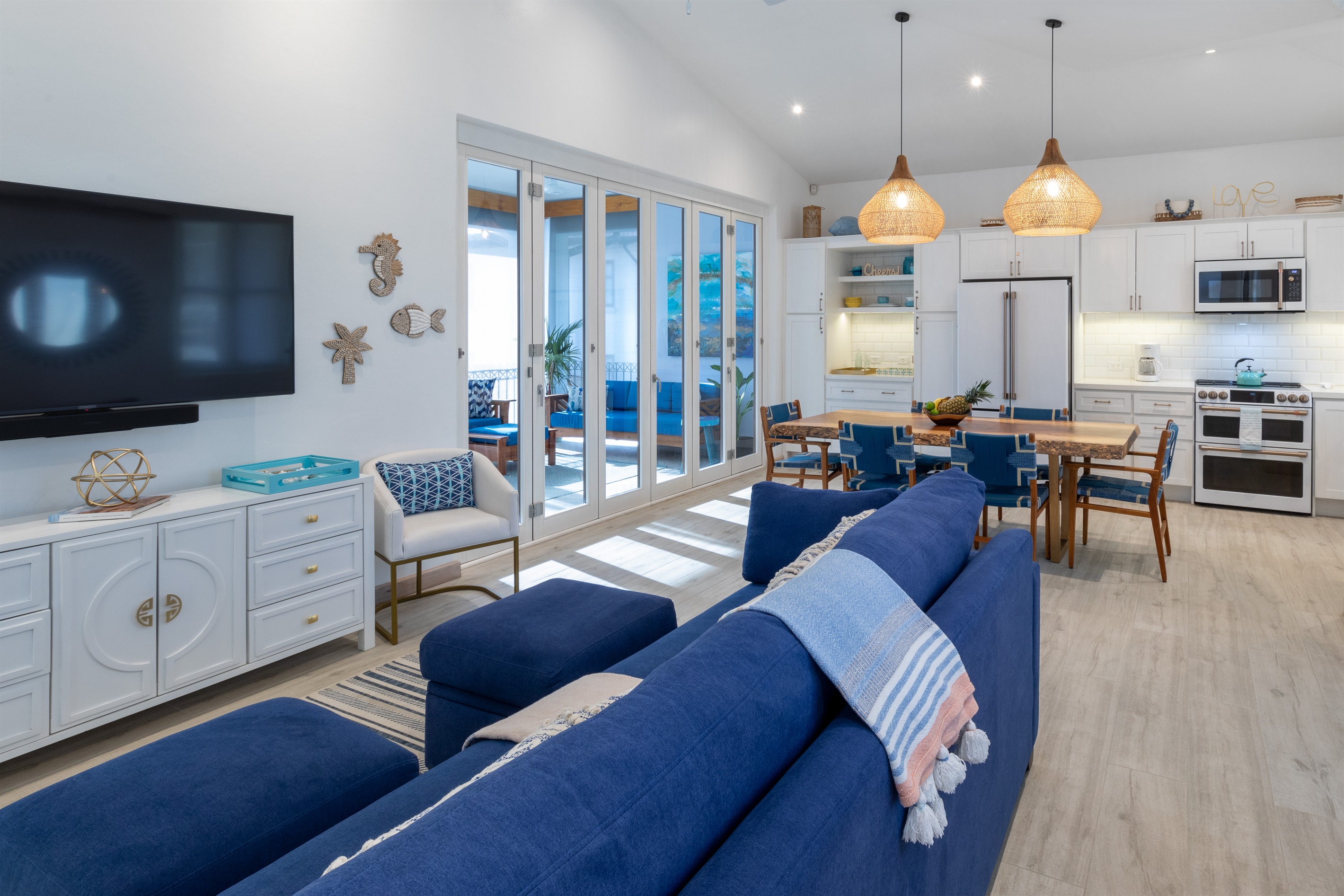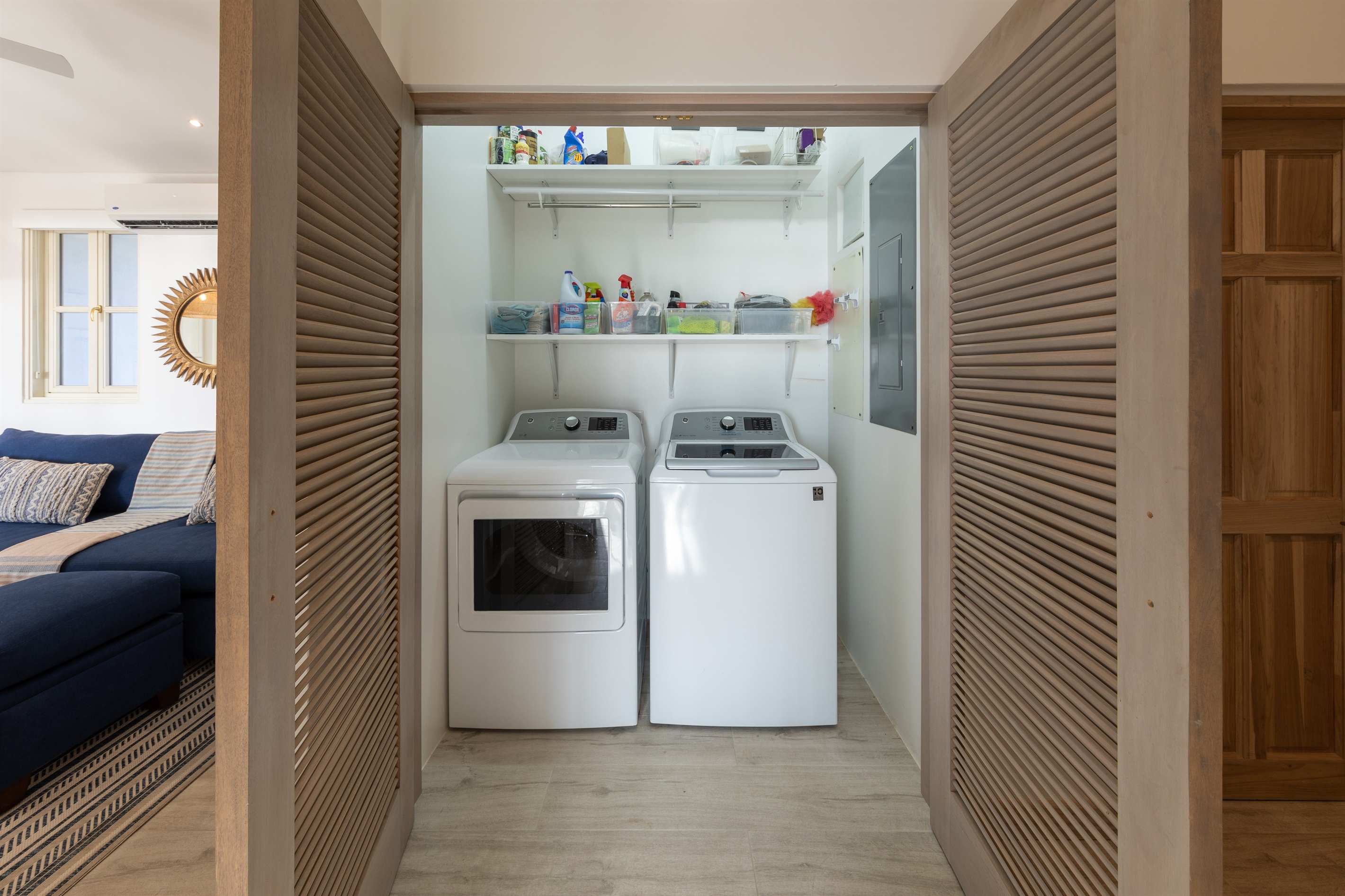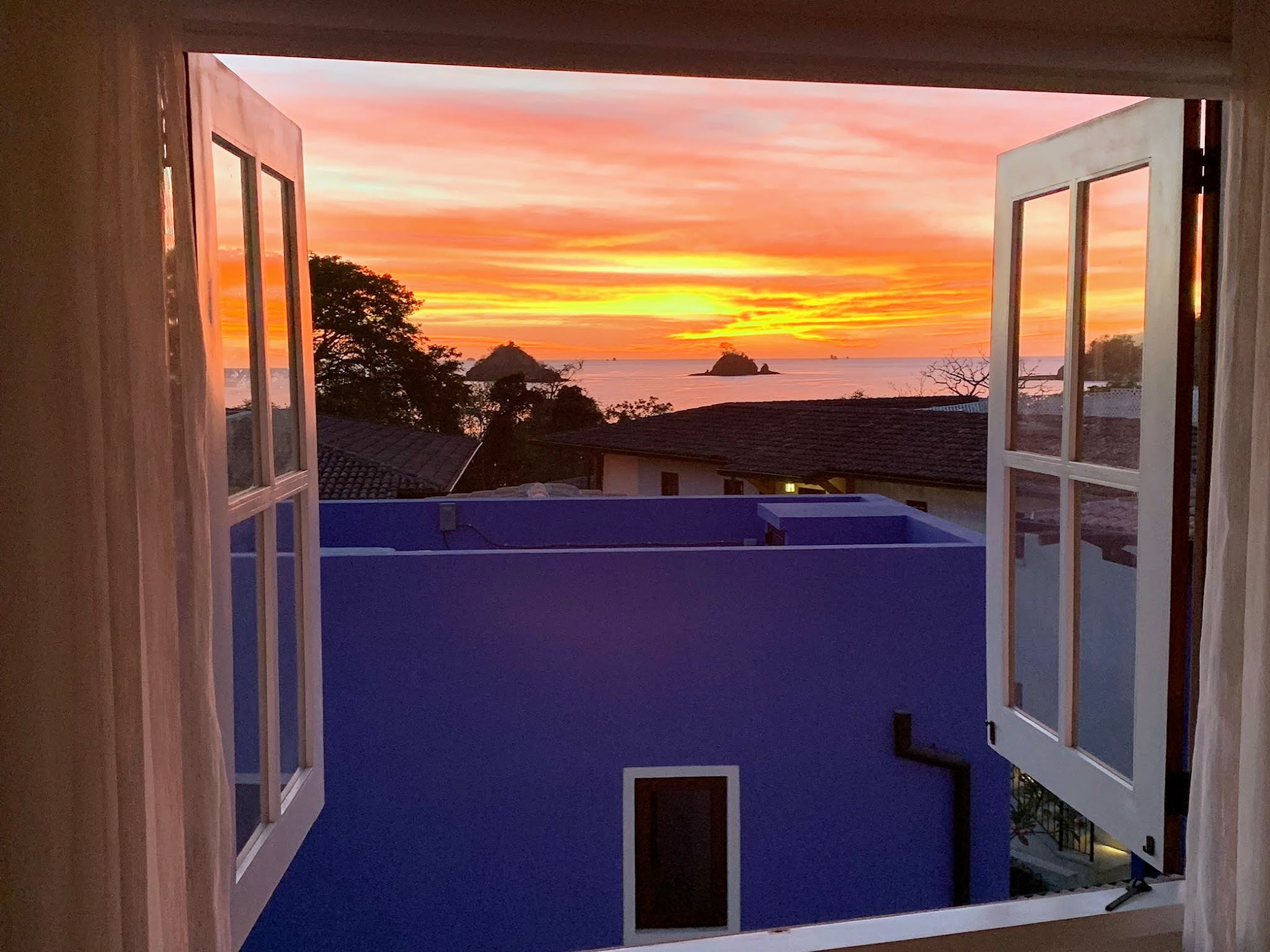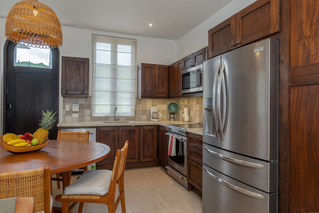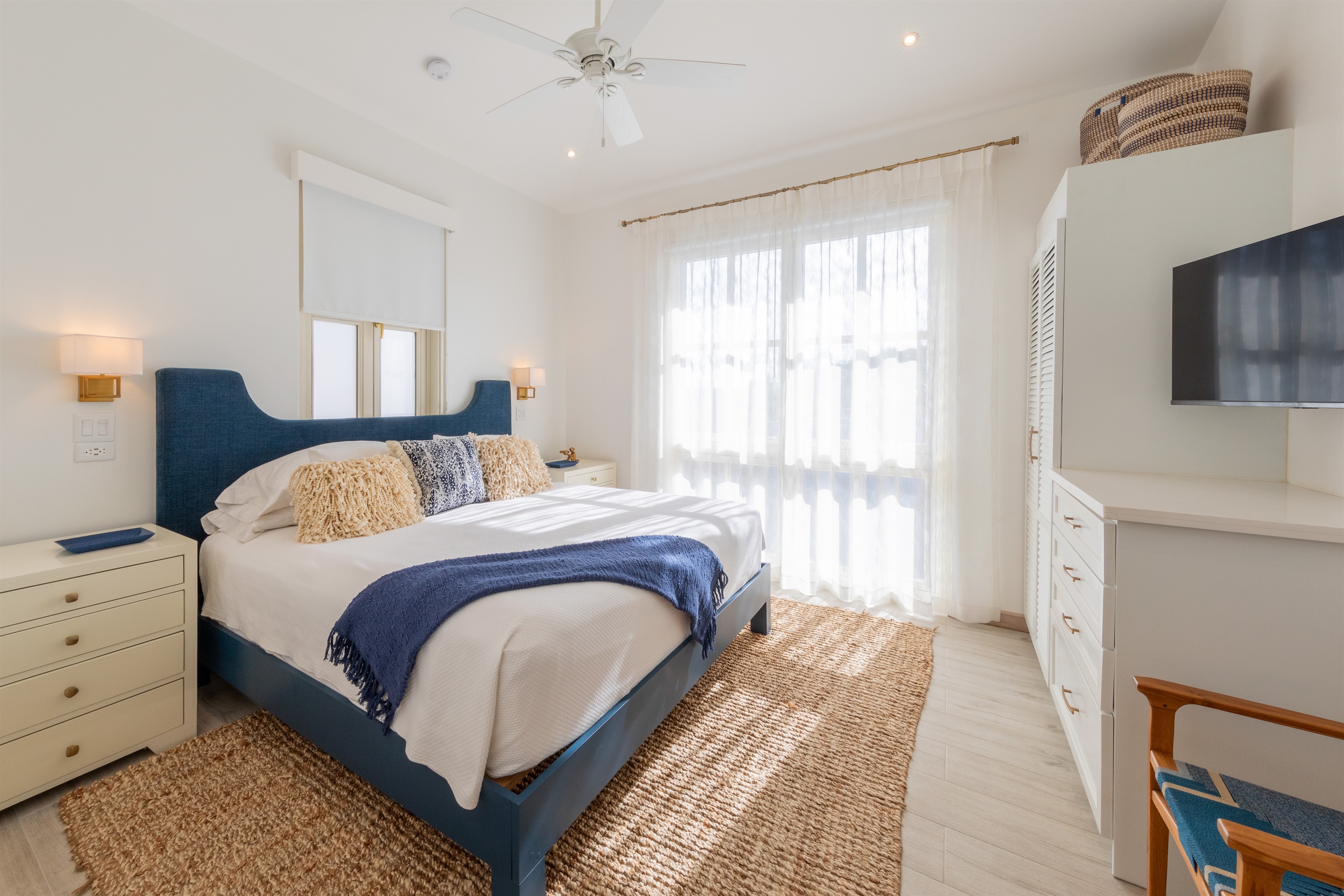 Fully remodeled flat with king suite + bunk‑style 2nd bedroom, full kitchen, Smart TV, Wi‑Fi, washer/dryer, linens & private patio w/ grill. Between two car‑free plazas w/ rooftop ocean views & outdoor shower. Steps to Playa Danta, restaurants & biking trails; close to sailing, zip‑lining & horseback riding. Pet‑friendly. 45 min from Liberia Airport.