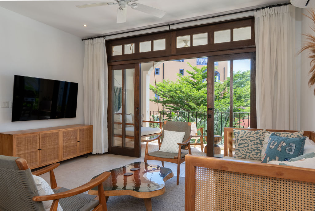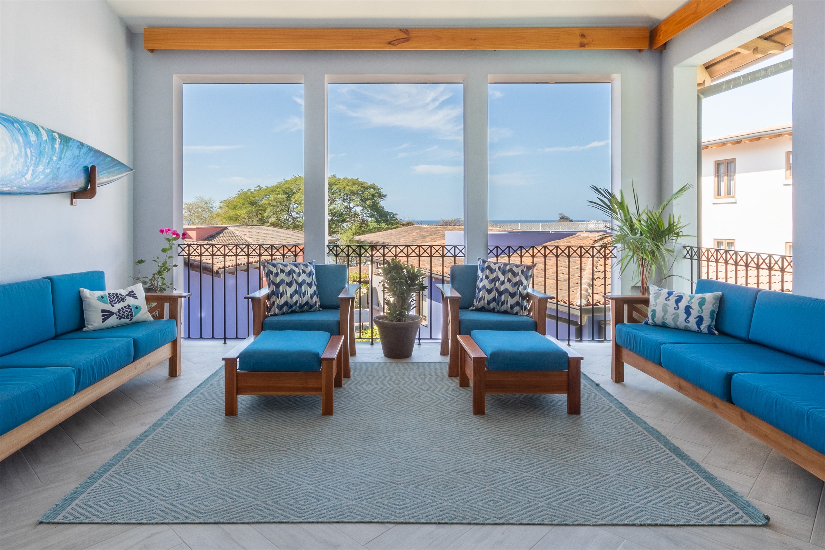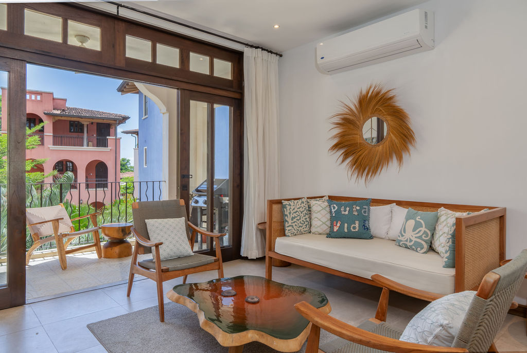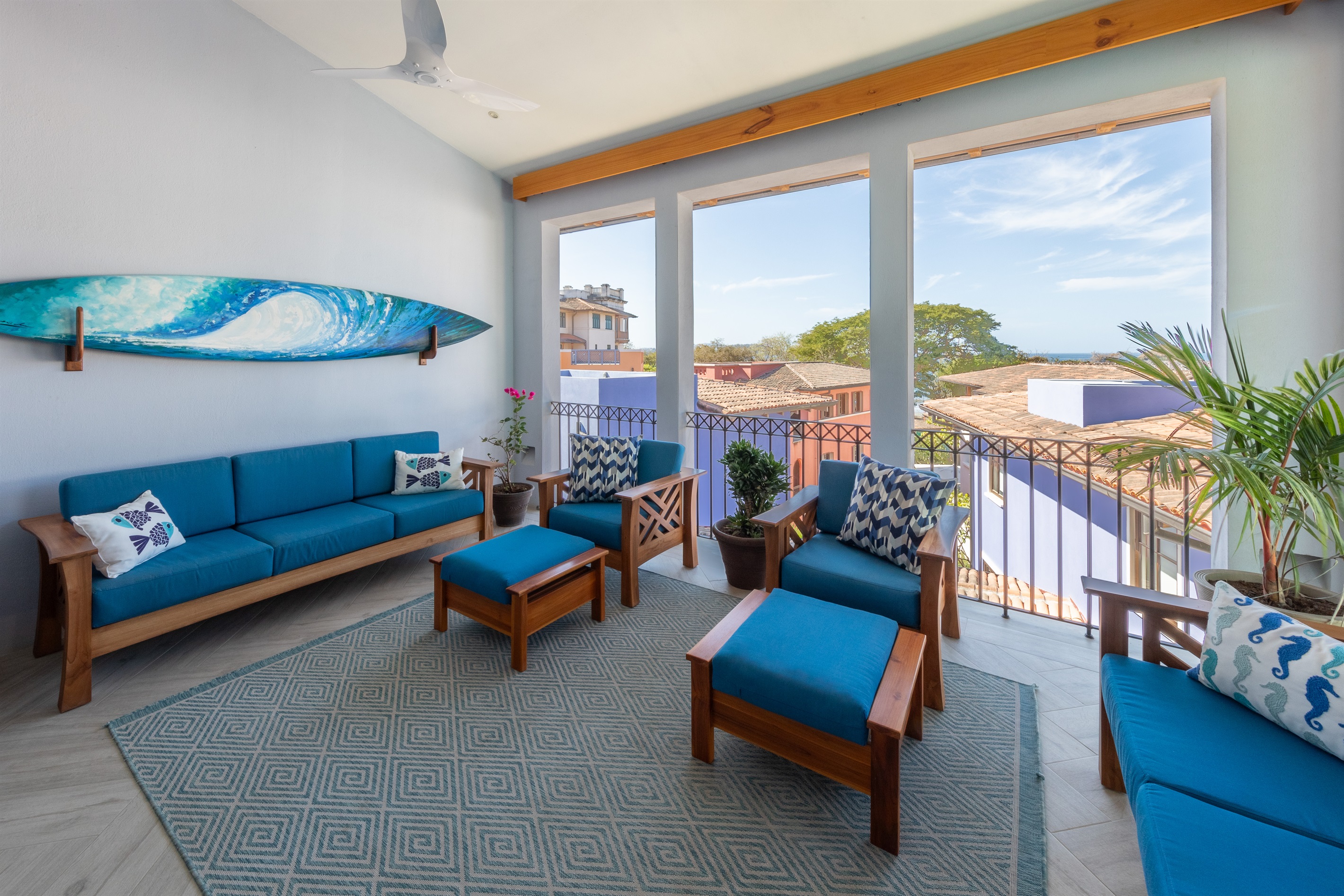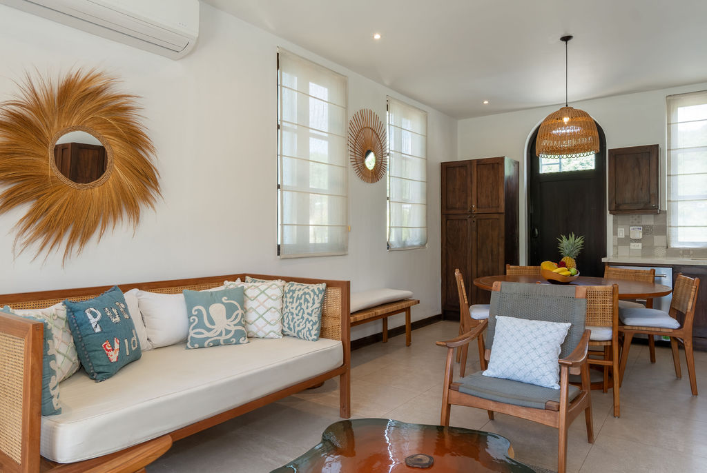 Breezy oceanfront apartment at Posada San Rafael, steps from Playa Danta and the Beach Club. Enjoy daily breakfast, housekeeping, and concierge service. Master suite with ocean views and stone ensuite, plus a fun bunk room for families. Terrace dining with sea views, antique charm, and modern comforts. Complimentary beach gear included, with pools, gym, and dining just doors away.