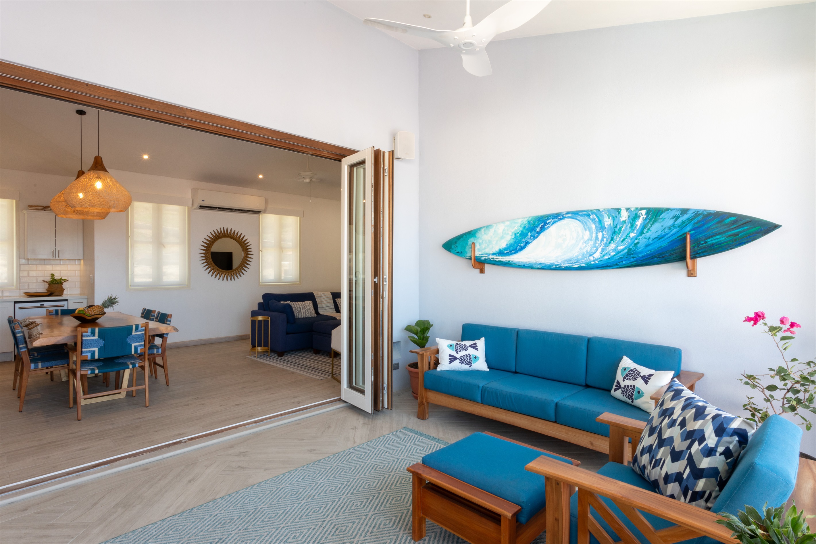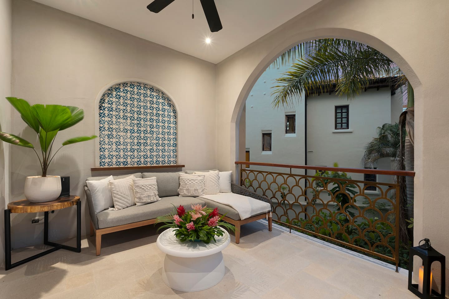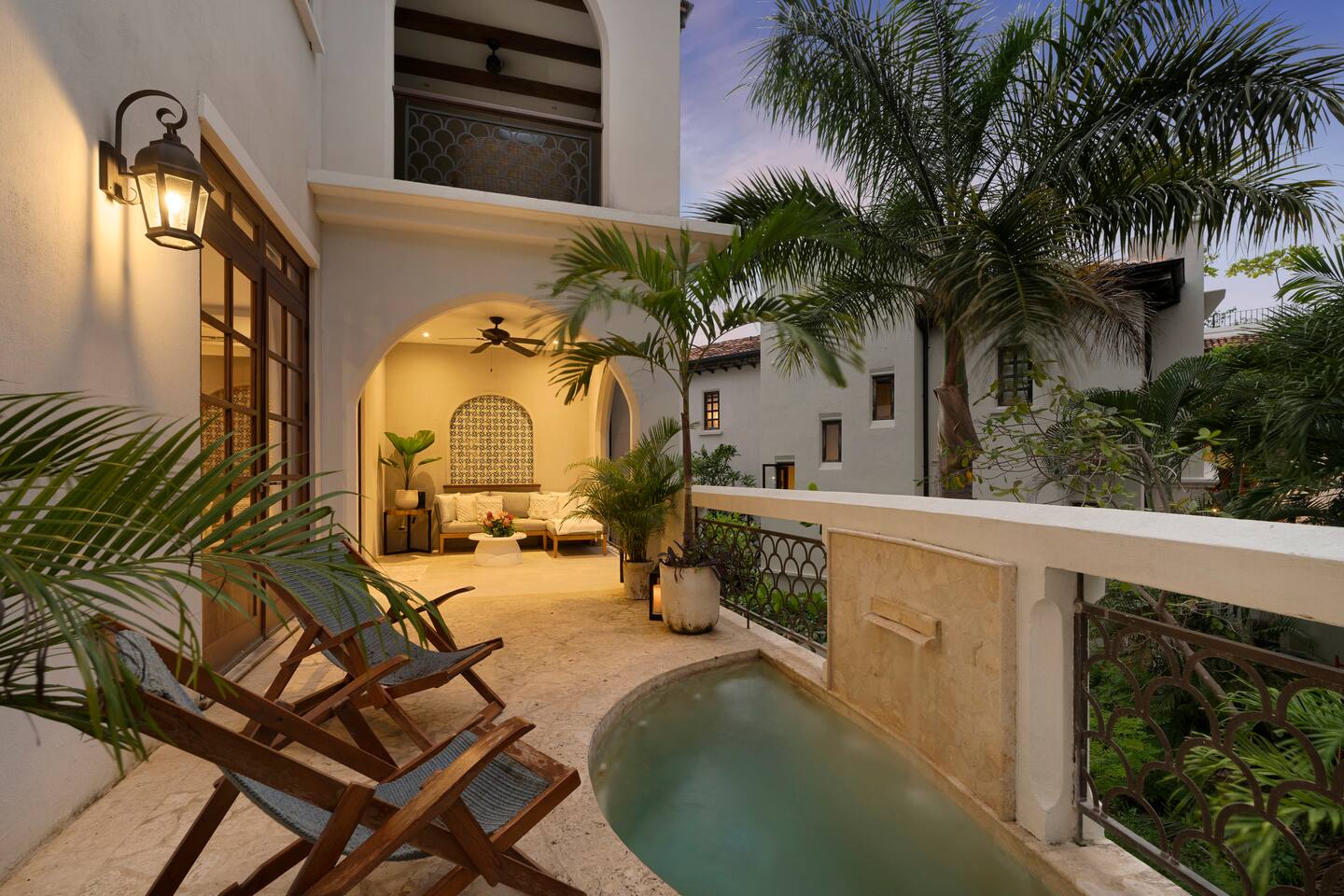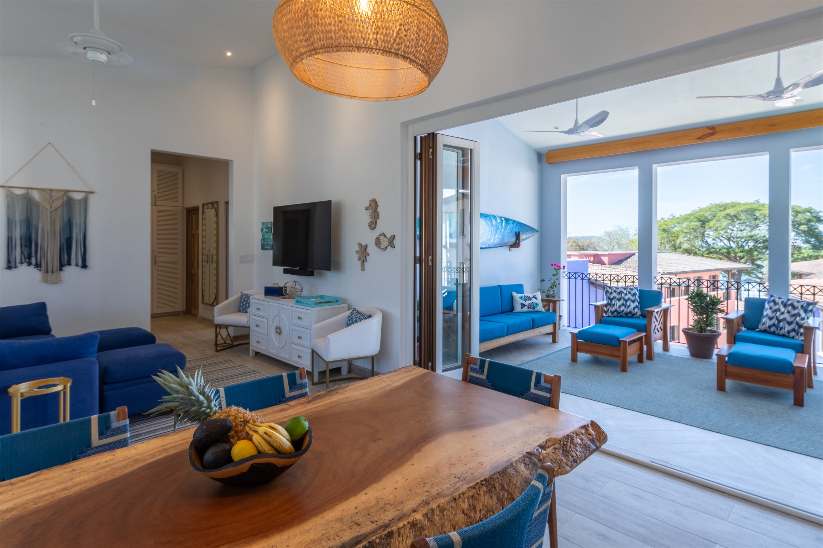 Breezy oceanfront apartment at Posada San Rafael, steps from Playa Danta and the Beach Club. Enjoy daily breakfast, housekeeping, and concierge service. Master suite with ocean views and stone ensuite, plus a fun bunk room for families. Terrace dining with sea views, antique charm, and modern comforts. Complimentary beach gear included, with pools, gym, and dining just doors away.