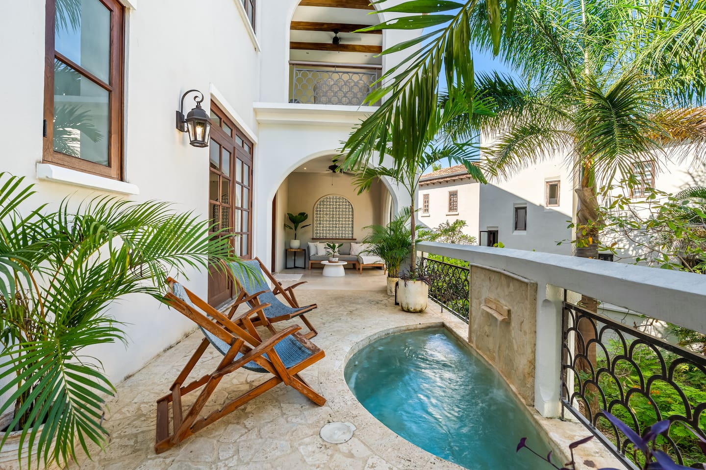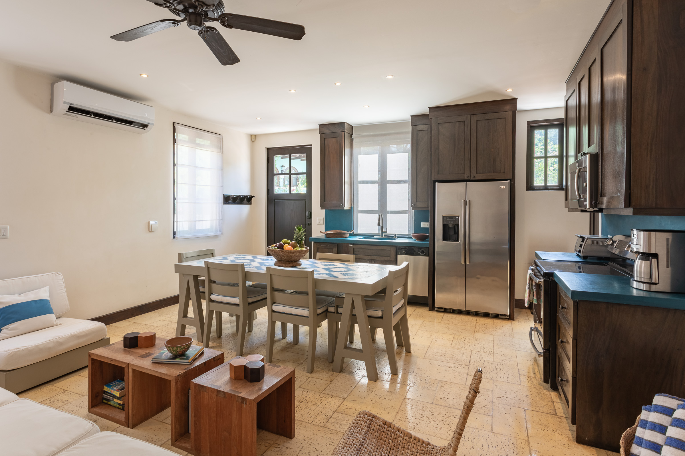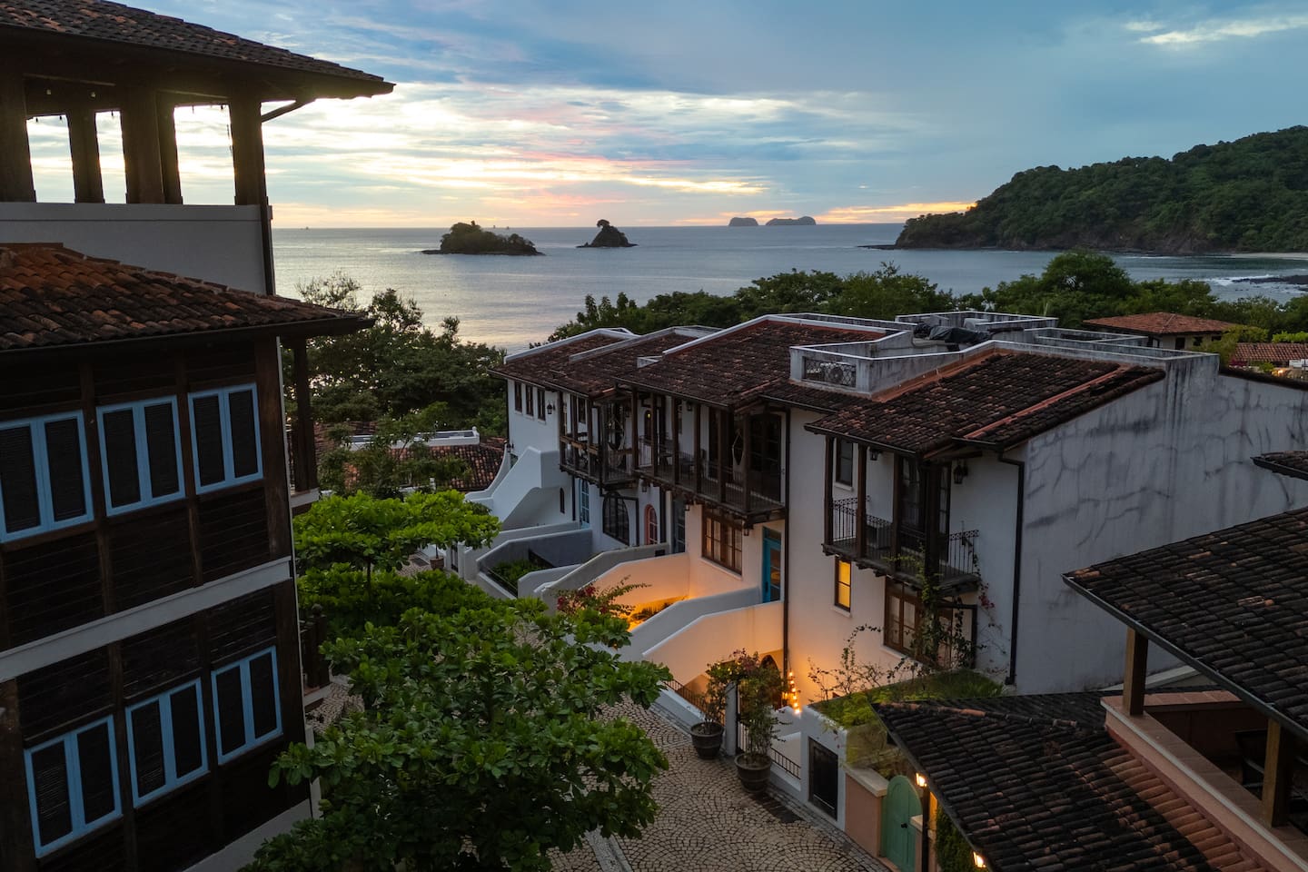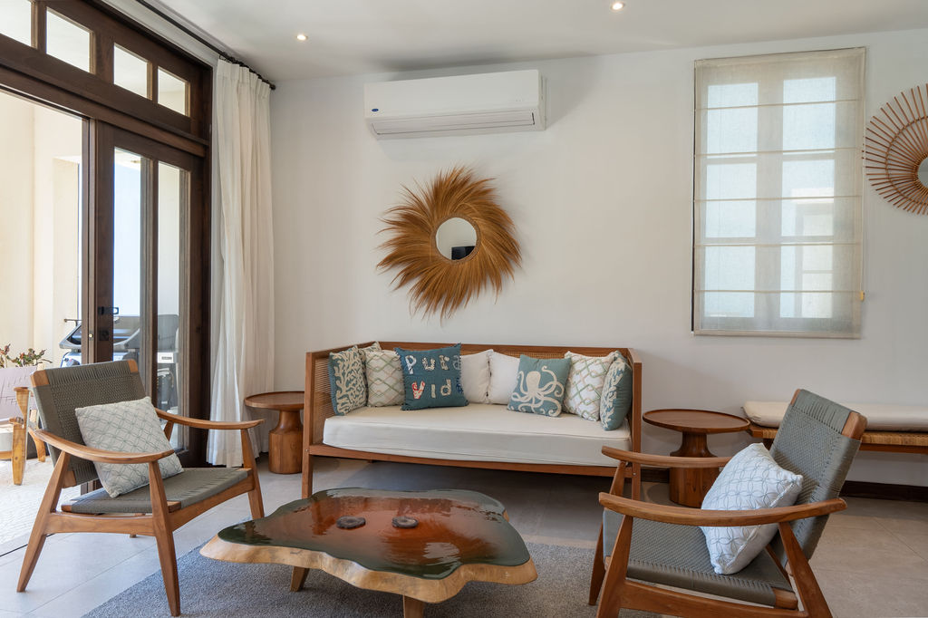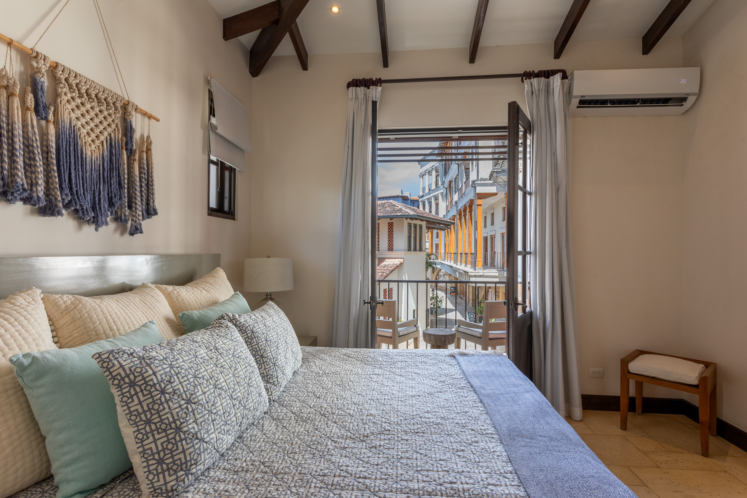Breezy oceanfront apartment at Posada San Rafael, steps from Playa Danta and the Beach Club. Enjoy daily breakfast, housekeeping, and concierge service. Master suite with ocean views and stone ensuite, plus a fun bunk room for families. Terrace dining with sea views, antique charm, and modern comforts. Complimentary beach gear included, with pools, gym, and dining just doors away.