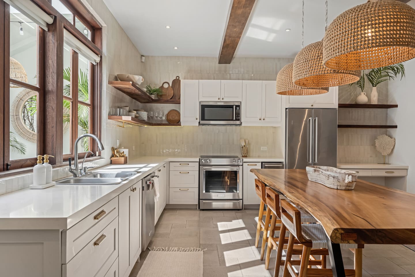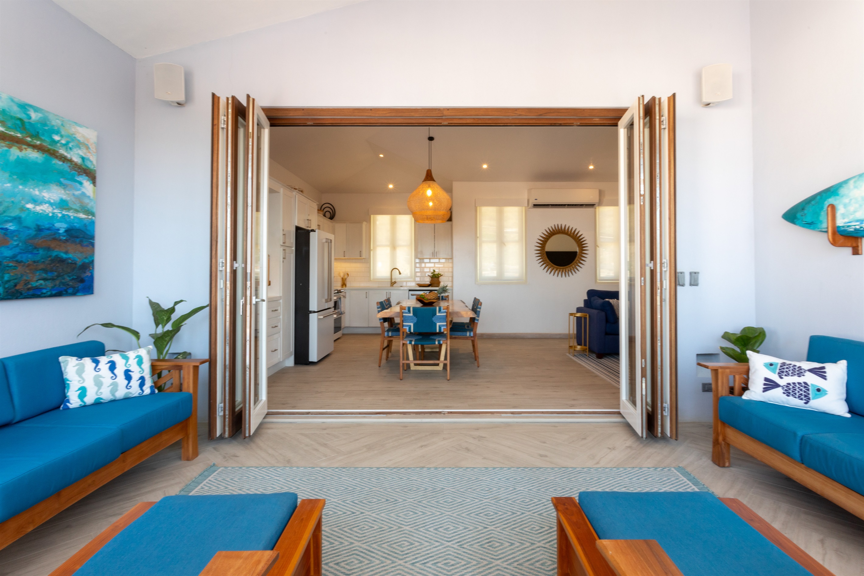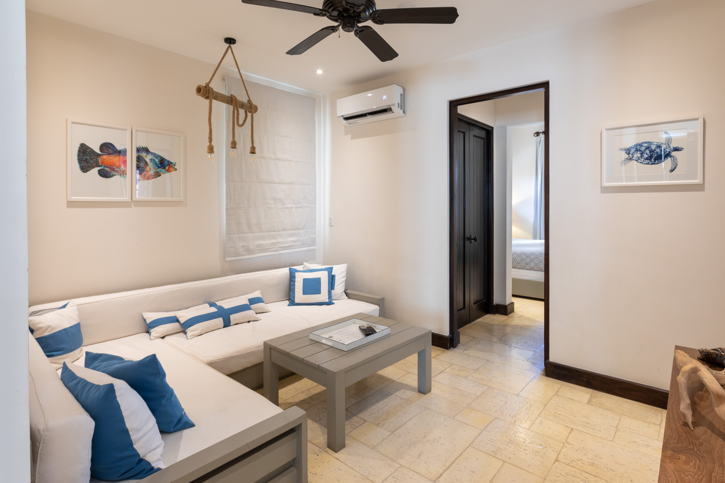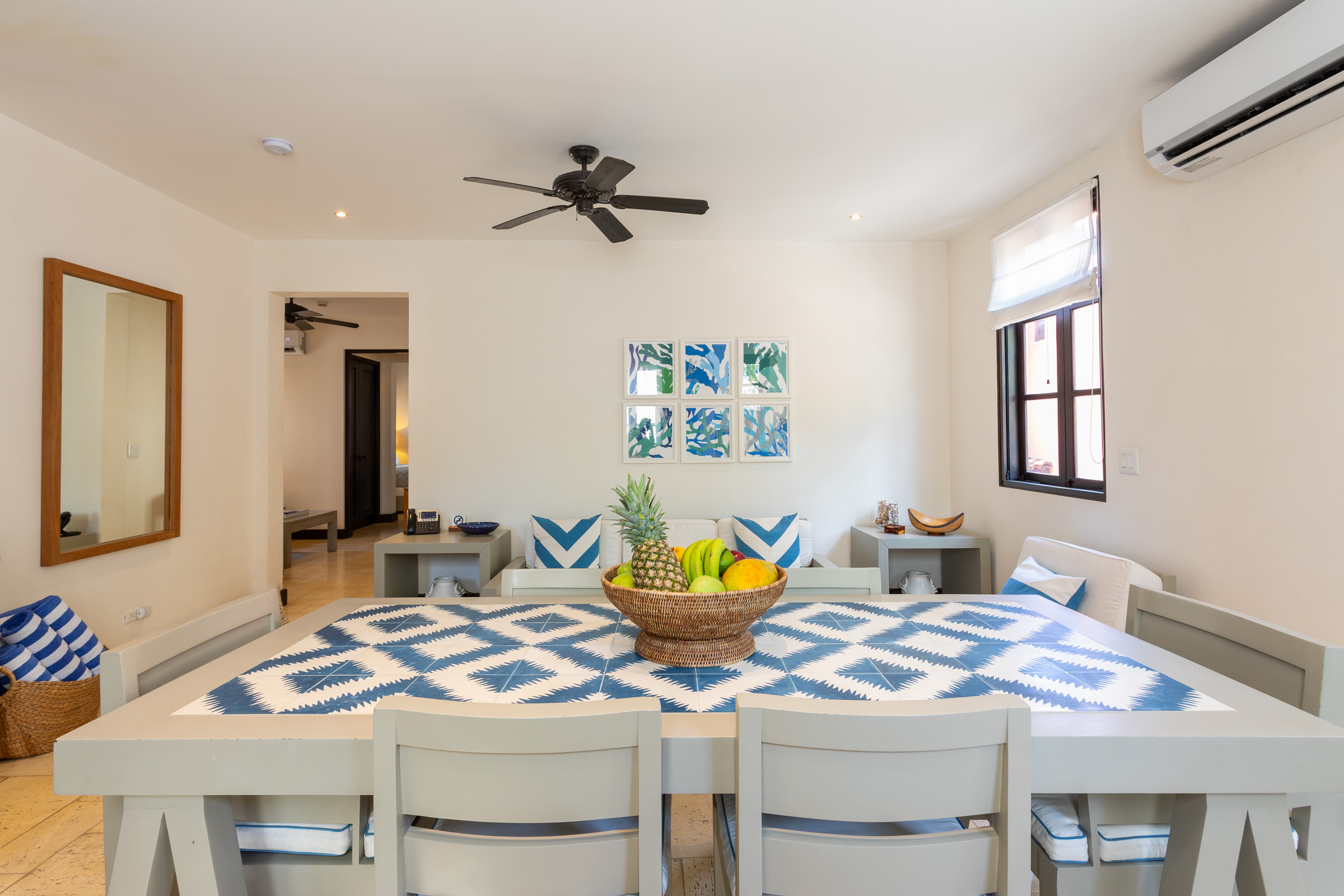 Breezy oceanfront apartment at Posada San Rafael, steps from Playa Danta and the Beach Club. Enjoy daily breakfast, housekeeping, and concierge service. Master suite with ocean views and stone ensuite, plus a fun bunk room for families. Terrace dining with sea views, antique charm, and modern comforts. Complimentary beach gear included, with pools, gym, and dining just doors away.