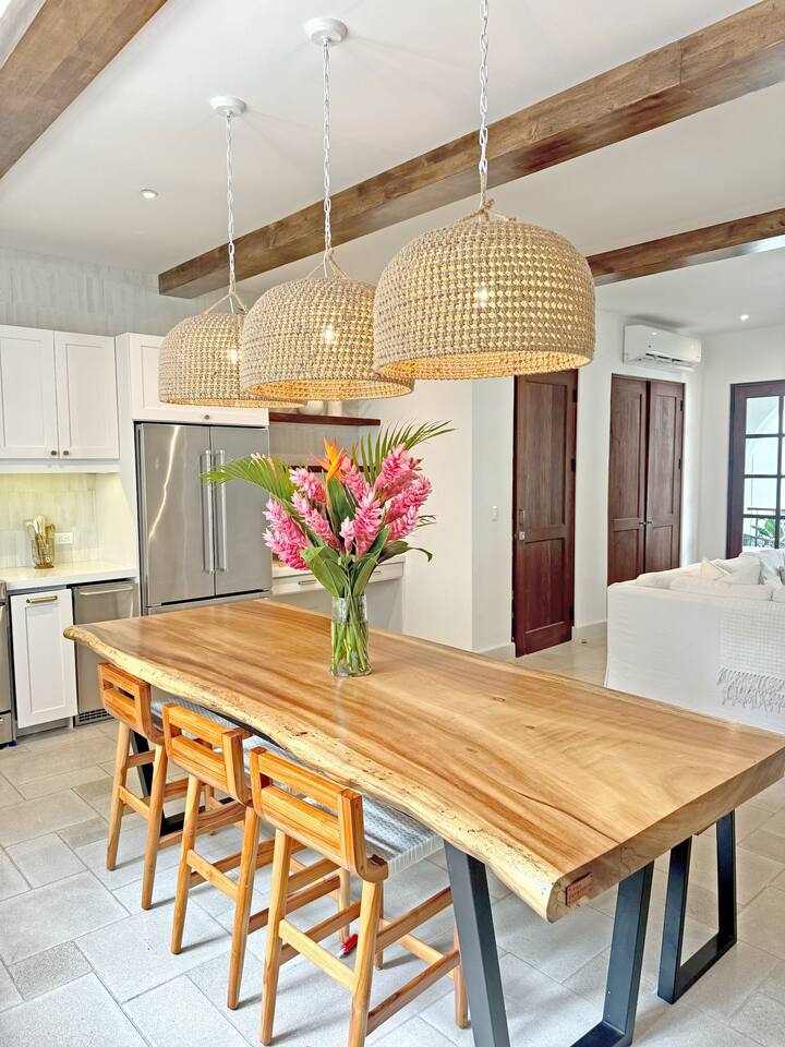 Beautifully appointed home offers all the comforts of home in the walkable town of Las Catalinas. Enjoy a king bed in the primary suite, a second bedroom with a queen and twin bunks, a fully equipped kitchen, Wi-Fi, Smart TV, and washer/dryer. Relax on the back terrace with plunge pool. Just steps from Playa Danta, mountain biking trails, restaurants, and more.