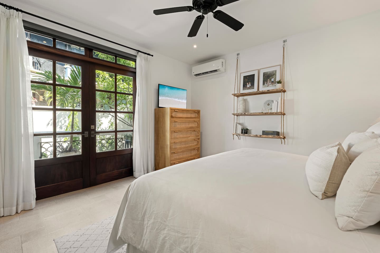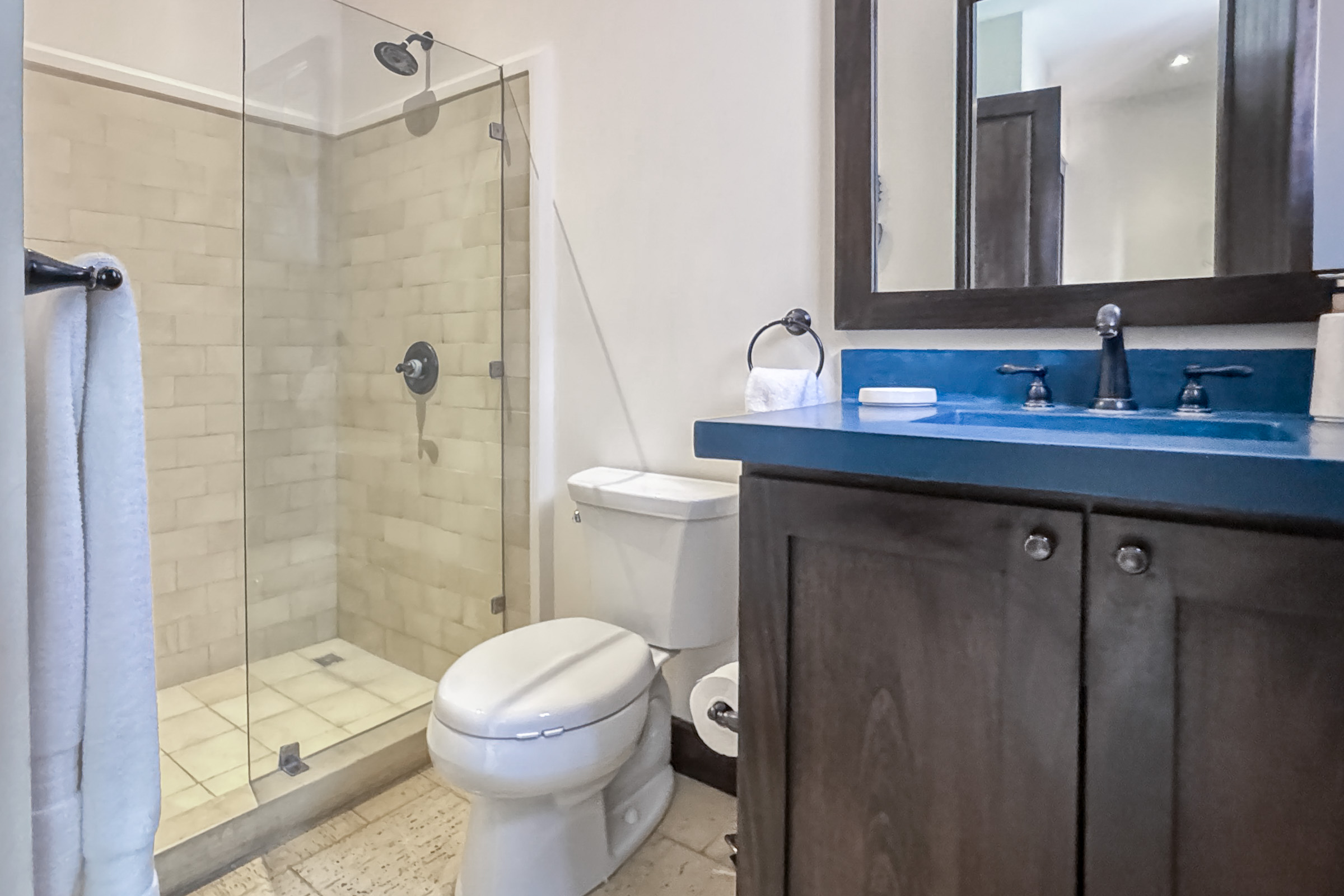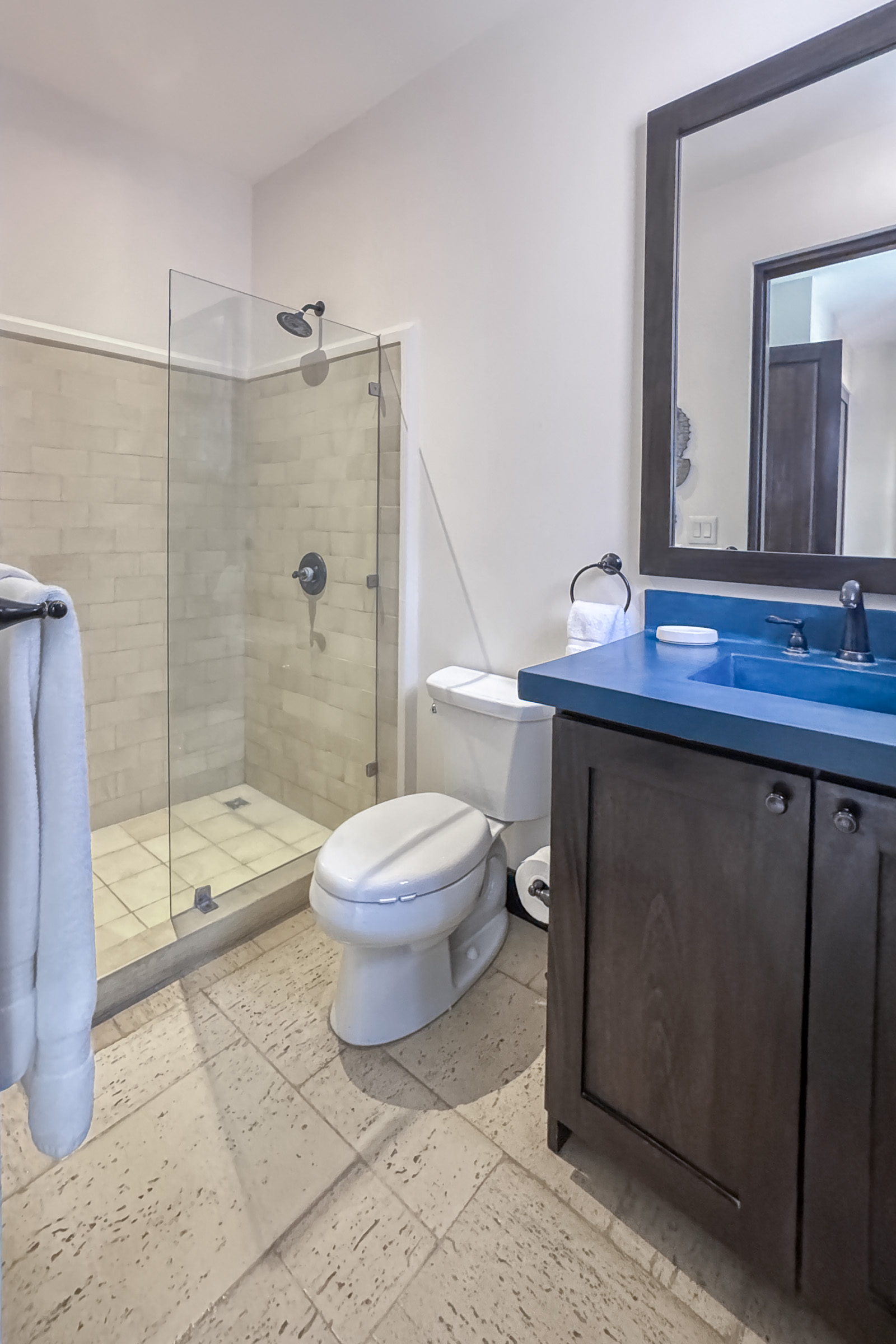 Slide open the tall blue doors of the Santiago apartment and step onto the breezy, bougainvillea-draped veranda, where you can enjoy your morning coffee with the soothing sound of the ocean. Stroll just four doors down the cobblestone street to the Beach Club pools, or take the nature path that leads directly to the Pacific Ocean, only a stone’s throw away. Welcome to Posada San Rafael—a uniquely charming seaside retreat. This apartment comes with concierge services, daily housekeeping and continental breakfast daily prepared by our house mom.