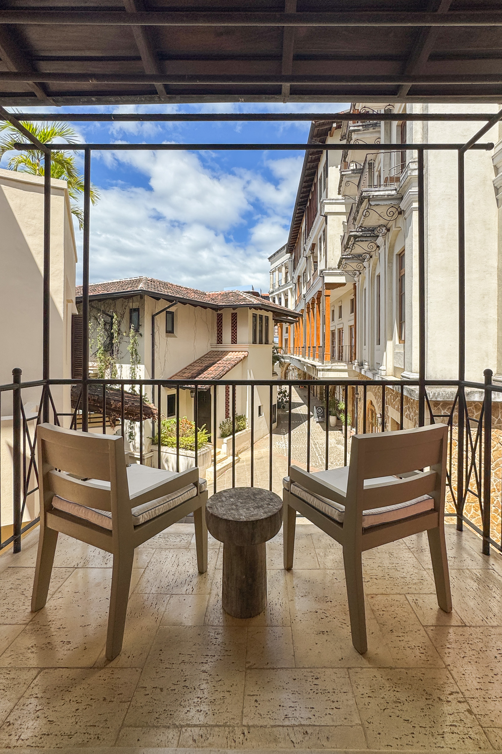 Nestled behind a gated stone vestibule, Suite San Francisco offers a serene blend of luxury and timeless artistry. The suite features unique elements from the owner’s travels—antique finds from ruined monasteries and haciendas—perfectly paired with modern comforts. A striking wall of blue doors opens to an oceanfront balcony where swivel rockers invite you to relax by the sea. Inside, a king bed adorned with Mayan textiles and a Cuban-tiled minibar add character to the space, while a luxurious bath with a pebbled shower and antique vanity promises relaxation.