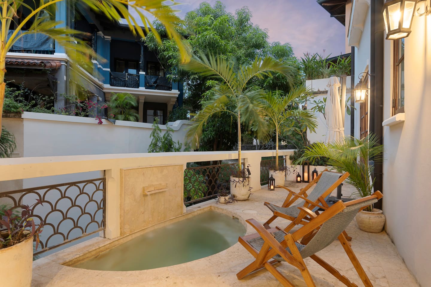 Nestled in the charming cobblestone village of Las Catalinas, Suite San Miguel is one of three luxury suites at Posada San Rafael. With soaring vaulted ceilings, antique blue-carved wardrobe doors, and a canopied iron bed draped in original indigenous textiles, this suite is a blend of rare and exquisite treasures, carefully curated for the most discerning travelers. Enjoy a romantic plunge in your private pool or unwind in a hammock with a cold beverage.